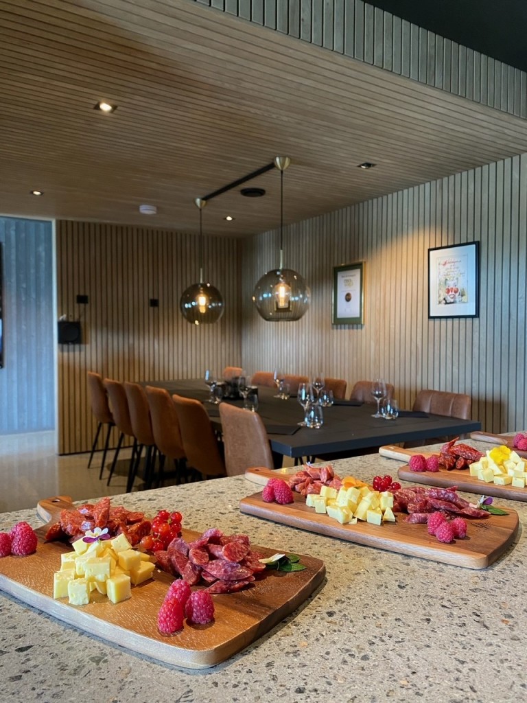 Her har det vore fruktproduksjon sidan slutten av 1800-talet, og rundt gardstunet står det Gravenstein, Raud Aroma, Rubinstep, Discovery og Raud Elstar på rekke og rad. Nokre plommetre er det òg plass til.