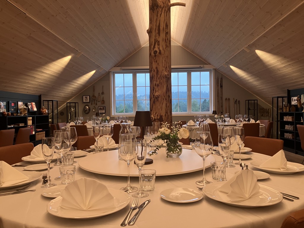 Maten skal i hovedsak baseres på gårdens resurser som lam, vilt og ørret. De restaurerte gamle bygningene med inventar og utstyr fra tidligere generasjoner på 1700 og 1800 tallet er nå synliggjort og tilgjengelige. Etter avtale tilbyr vi nå lokaler til bryllup, konfirmasjon, julebord, feiringer, kurs og andre ulike sammenkomster. Vi tilpasser oss etter gjestenes behov. Låven vil ha 3 etasjer tilgjengelige for totalt 125 gjester. 1.etasje vil ha et møterom for 10 personer, en liten salong, kjøkken for servering og kjøttproduksjon, garderobe og toaletter. 2.etasje vil ha et selskapslokale for ca. 80 personer, anretningskjøkken, bar og salong. Gjødselkjelleren vil ha et selskaps-/kurslokale for ca. 35 personer, en liten salong. De 3 etasjene kan benyttes hver for seg eller samlet.