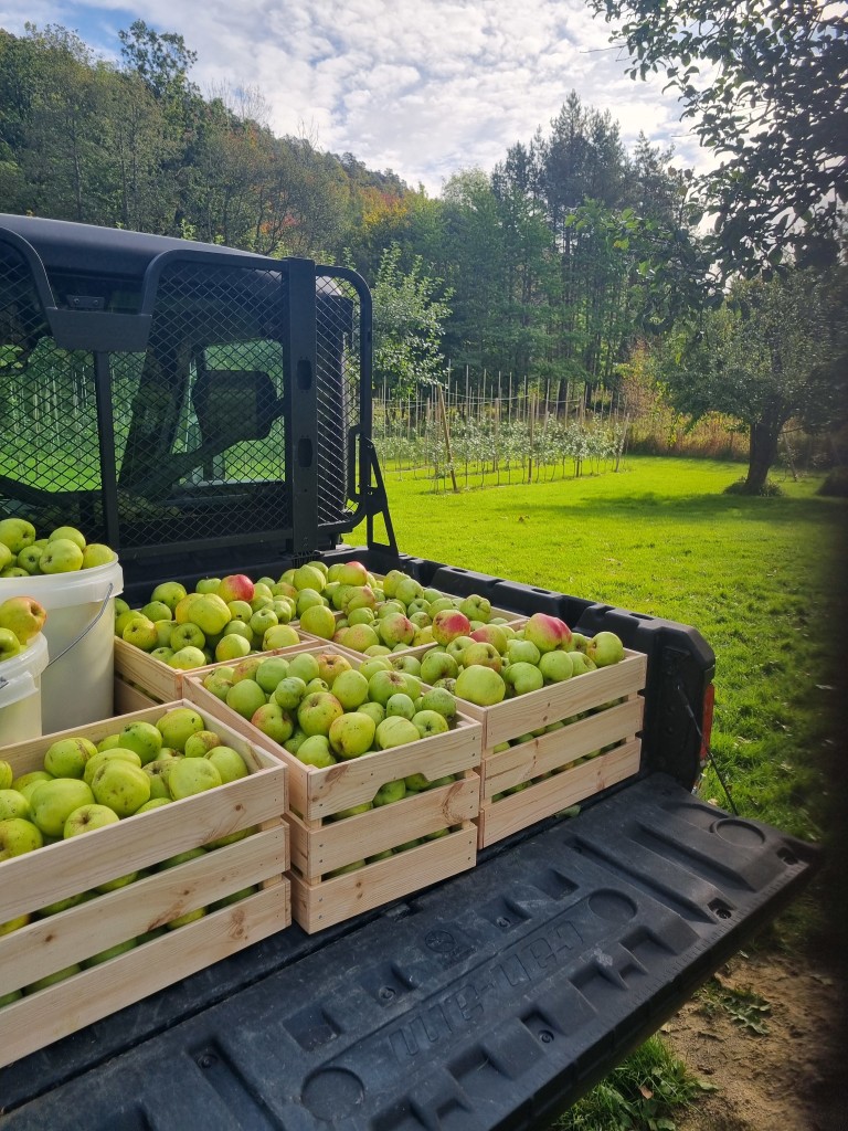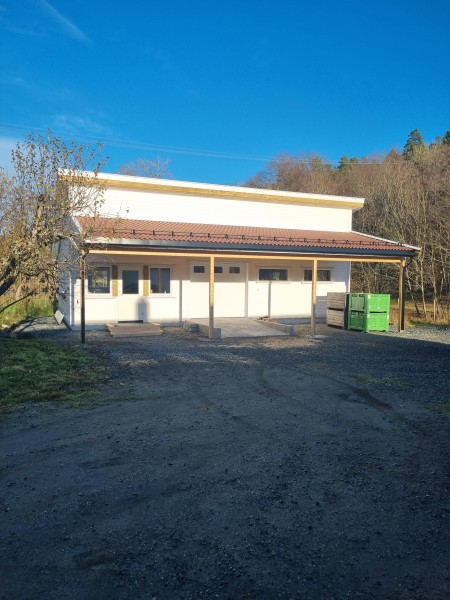 I 2024 bygde vi et mosteri for å kunne lage eplemost og fra høsten 2025 tilbyr vi leiepress til de som ønsker å få eplemost fra egne epler.