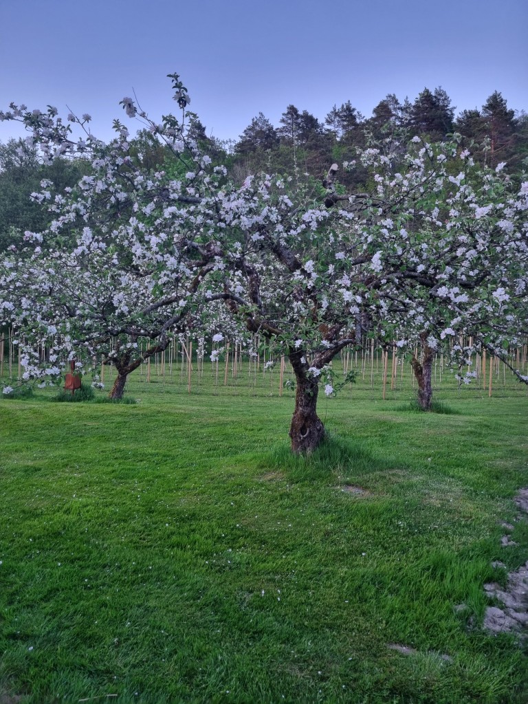 Her dyrker vi eplesortene Elstar, Santana, Summer Crisp, Discovery, Julka, Rød Aroma og Filippa.