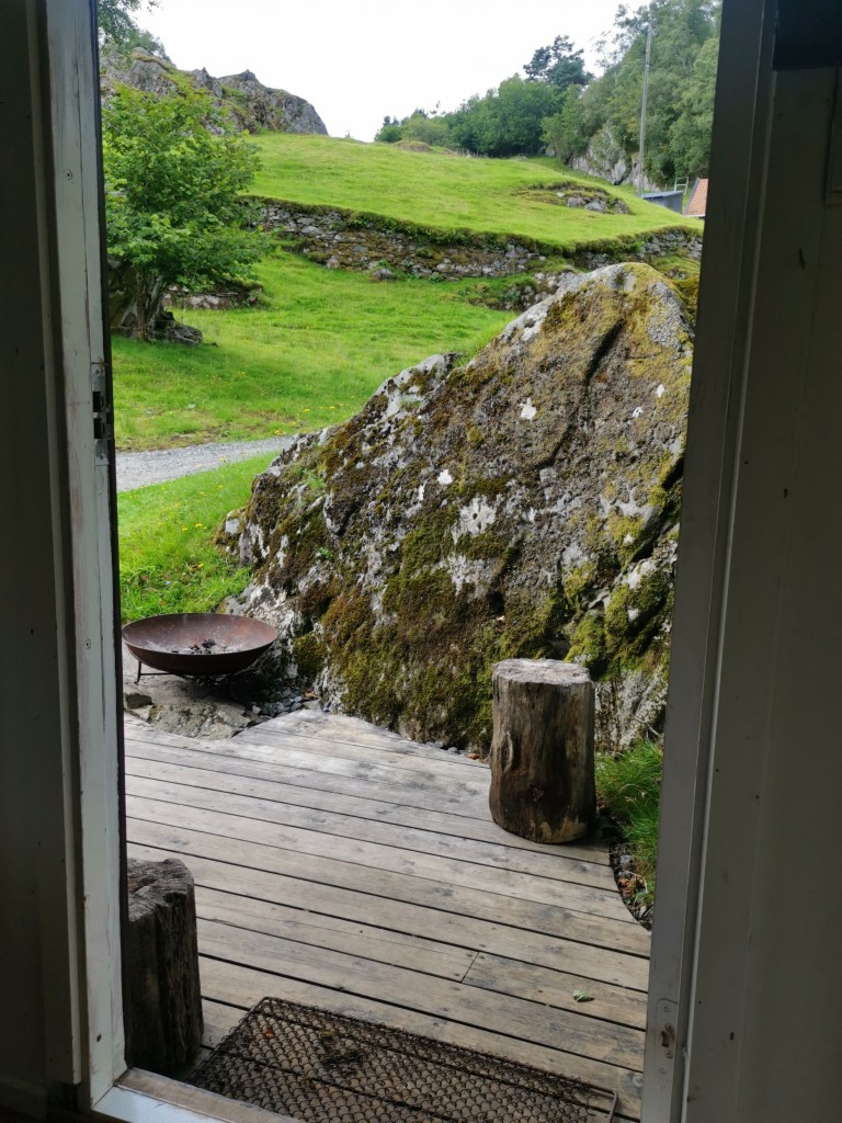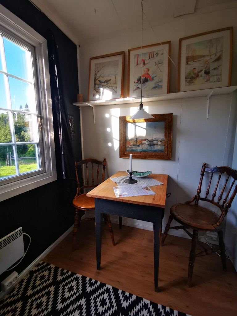 Skrivestova/Writers nest Koseleg minihus med lita dobbeltseng, 140×200, og to ekstra madrassar i tilfelle det trengs. Det er to rom i huset, og komposttoalett ute, men under same tak, så ein kan gå på sokkelesten. Det er ei mengd bøker i hyllene, for regndagar eller kalde kveldar. Det er muleg å lage mat i hytta, men det er pr no ingen steikomn. Vatn i kran utanføre husveggen. Det er ein liten lun og solrik terasse med bålfat rett utanføre inngangsdøra. Ekstra ved kan hentast på garden.