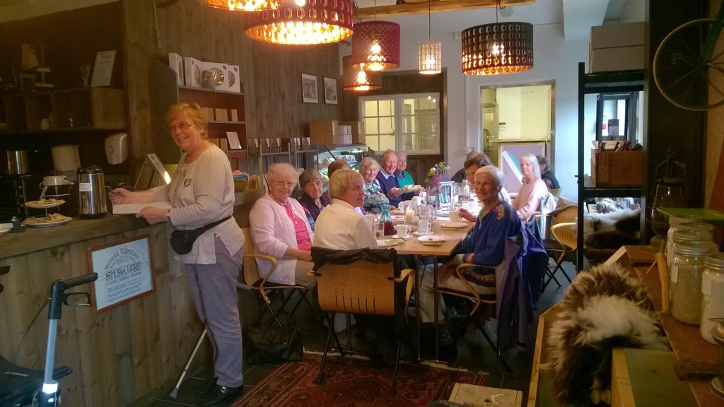 Gardsbutikken og kafeen som ligg vegg i vegg med bakeriet og fjøset såg dagens lys 1. april 2015. Her serverast dagens bakst te kaffien – eller du kan velgje ein nysteikt lapp rett frå takka med heimelaga syltetøy te – og stølsrumme i sesongen. Du kan òg bestille «Hallingdal`s nasjonalrett» til lunsj, som er småmat og lefsekling . Me har ikkje vanleg «fastfood» som hamburger, chips og brus, men kan friste med pølser frå lokalprodusent Tamt og Vilt attåt våre nydelege potetlomper eller «eplekaku» som det heiter her i dal`n, og heimelaga saft te drikke.