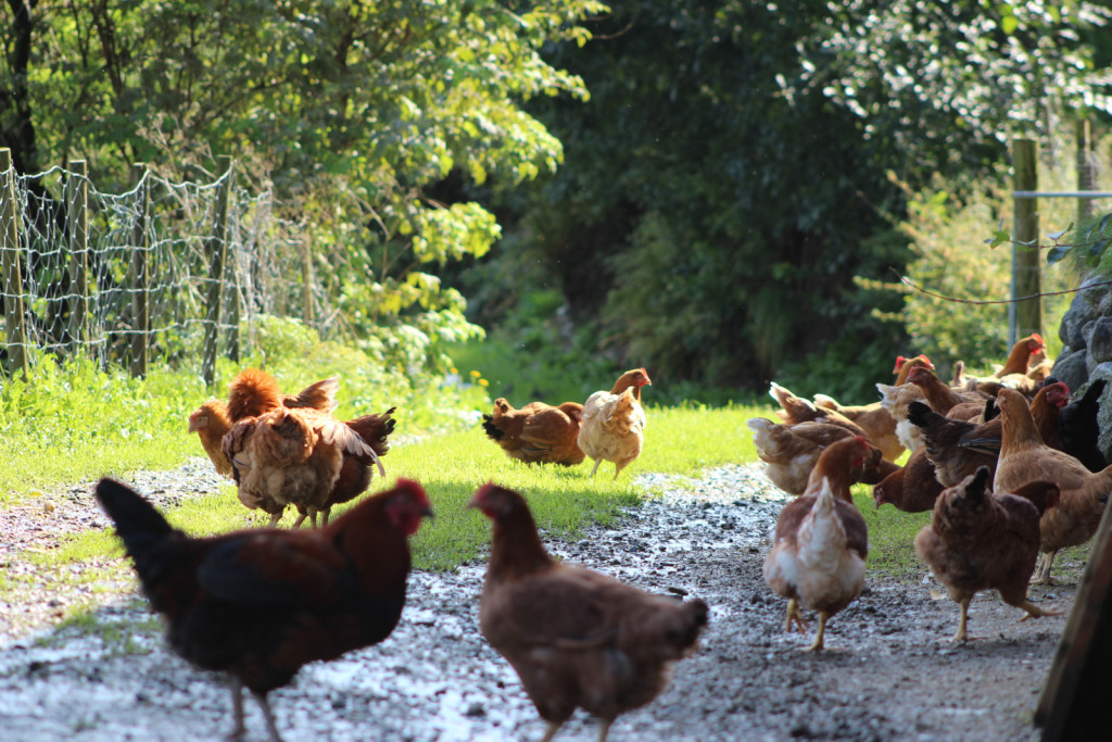 Dyra har fritt tilgang til areal ute, dei kan beite og få dagleg økologisk fôr. Fôret er av 100% økologiske ingrediensar.
