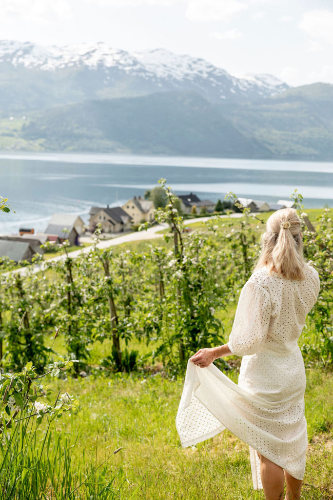 Vårt mål er å drive på ein bærekraftig måte. Vi er derfor opptatt av å utnytte alle ressursane garden kan tilby. Øvst i frukthagen var det for grunt til å plante epletre, så i staden valde vi å sette opp to hytter. Det er ingen bilveg til hyttene; du må vandre gjennom frukthagen, og du kan gjerne plukke med deg eit eple eller to når det er sesong. Vi kan sjølvsagt hjelpe deg med å frakte bagasjen din opp med ein ATV om du ønskjer det.