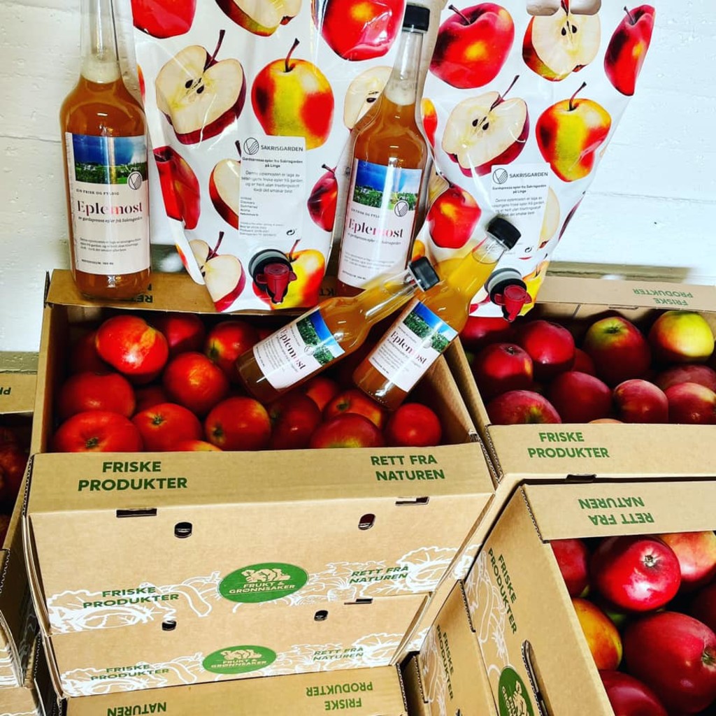 Eplemosten er laga av sesongens friske epler fra Sakrisgarden. Vi bruker ikkje nedfallsfrukt!