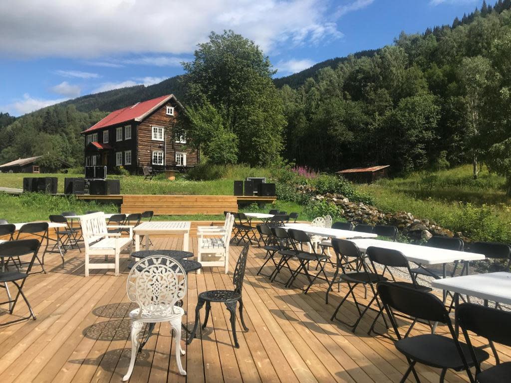 Serveringslokalet i Numedalsstua i hovedhuset fra 1850, foran bålet i den store Numedalspeisen. Fotograf: Gro Margun Børresen Sevle