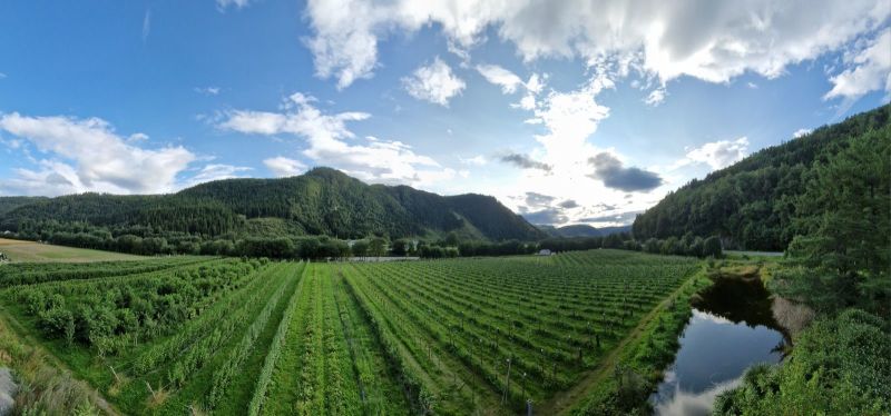Vi har også aronia som vi presser til råsaft og drikkeklar saft. Bringebær, svarthyll, rabarbra og pærer finner du også hos oss alt etter sesong. Vi driver økologisk og bruker mye tid på vår frukt- og bærhage. Alt blir plukket forsiktig for hånd sånn at vi vet at råvarene er av ypperste kvalitet.