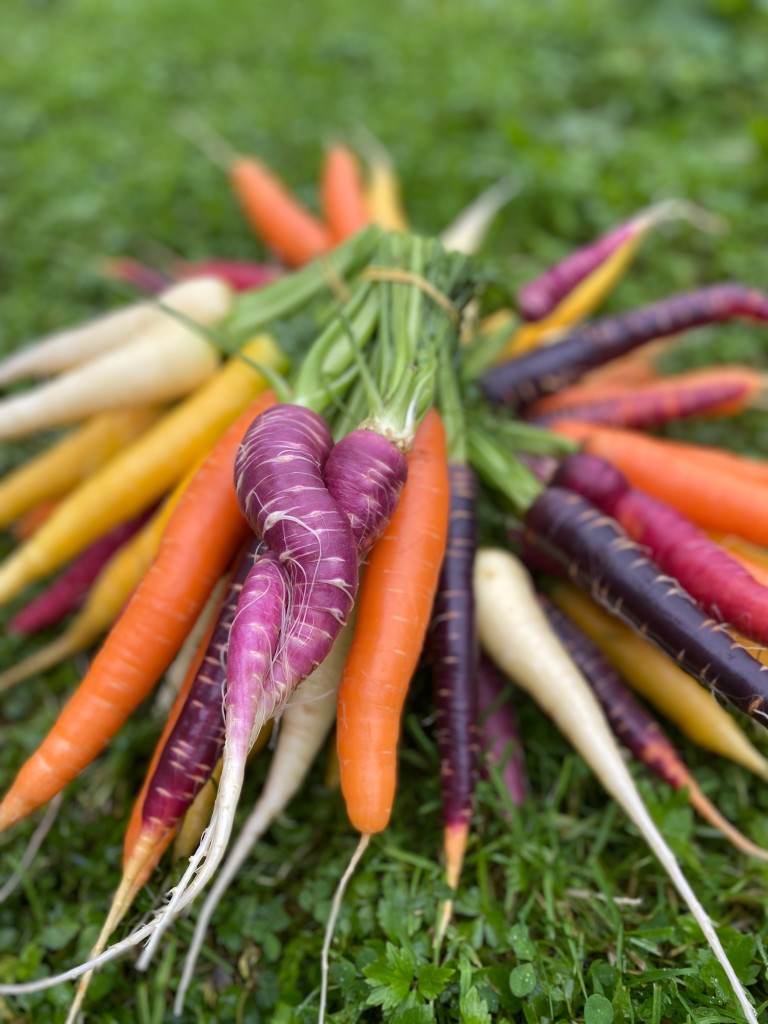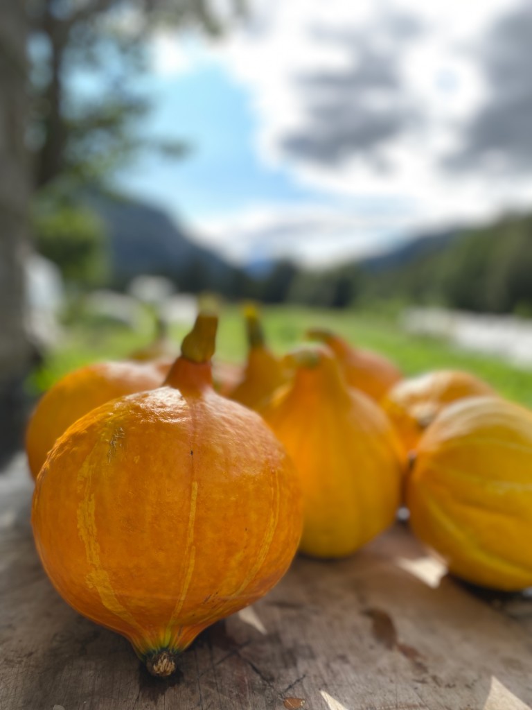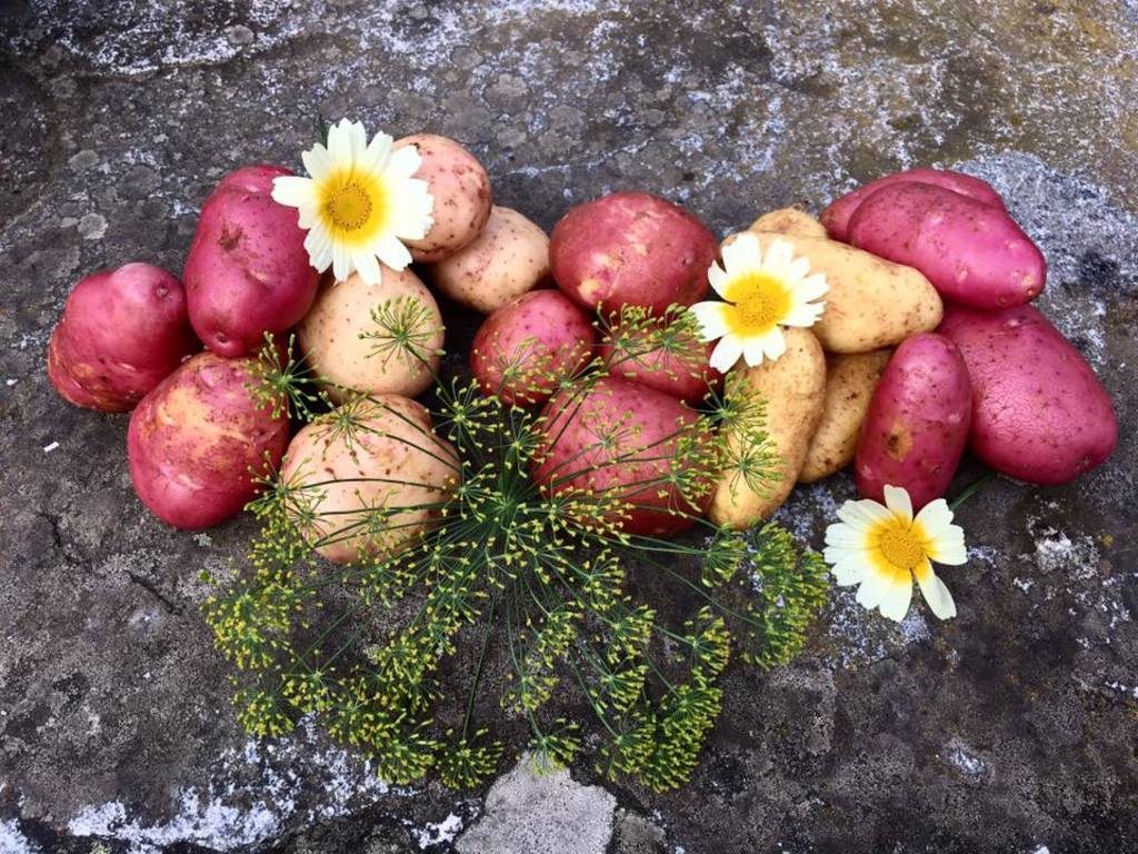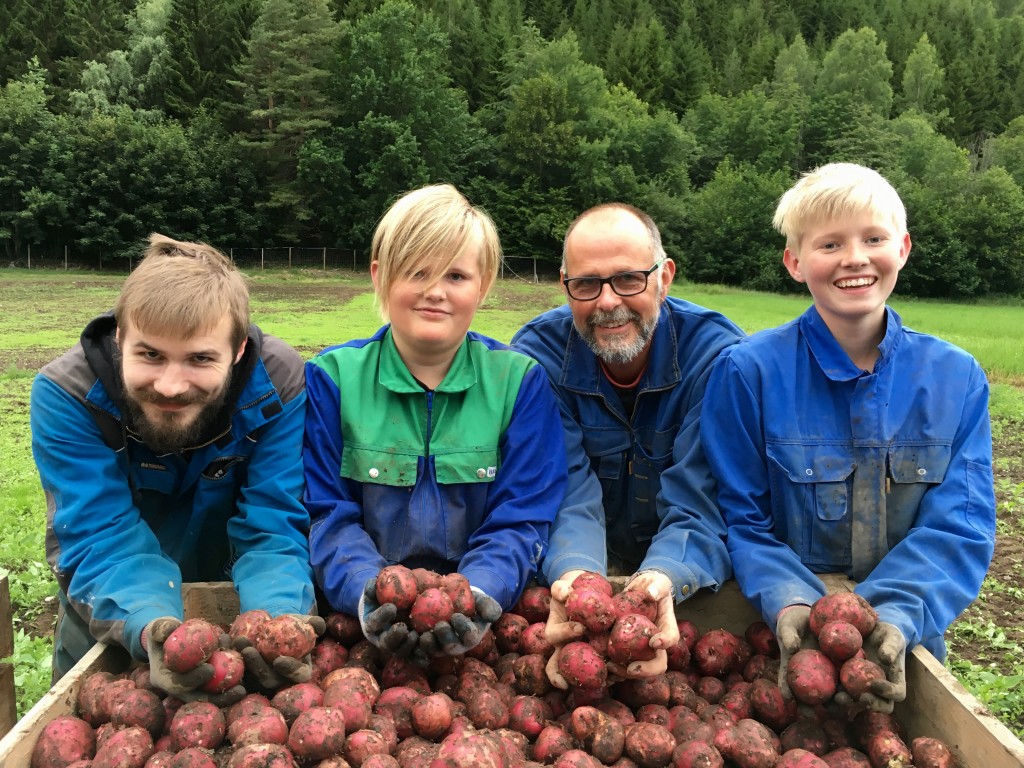 Når nypotetene er klare og jordbæra modnar, opnar vi gardsutsalet i garasjen på tunet. Her finn du dei godsakene det er sesong for. Når hausten kjem, flyttar vi utsalet av poteter, gulrot og rotgrønsaker til kjøleromma på garden – så det er alltid mogleg å gjere ein kortreist handel hos oss.