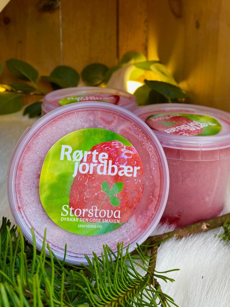 Sommaren 2022 laga vi den første prøveproduksjonen av rørt jordbær i det nye produksjonskjøkkenet vårt. Rørt jordbær er det beste vi veit, og vi bruker berre den aller beste jordbæra til dette. Vi frys ned den rørte jordbæra med ein gong – og kan tilby den ferske, gode smaken av sommar heile året.