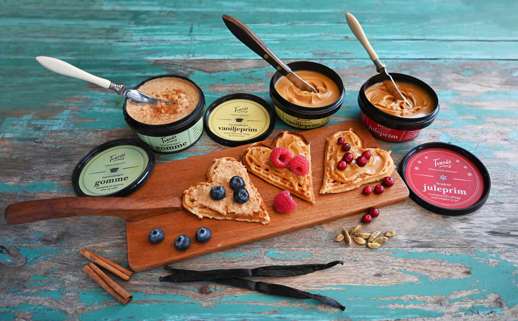 Tverås Gårdsmat tilbyr karamellisert vaniljeprim, hjemmelaget gomme, og krydret juleprim, laget etter trønderske tradisjoner. Nydelig pålegg for store og små som passer til lefse, vafler, sveler og brød.
