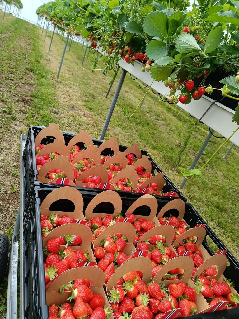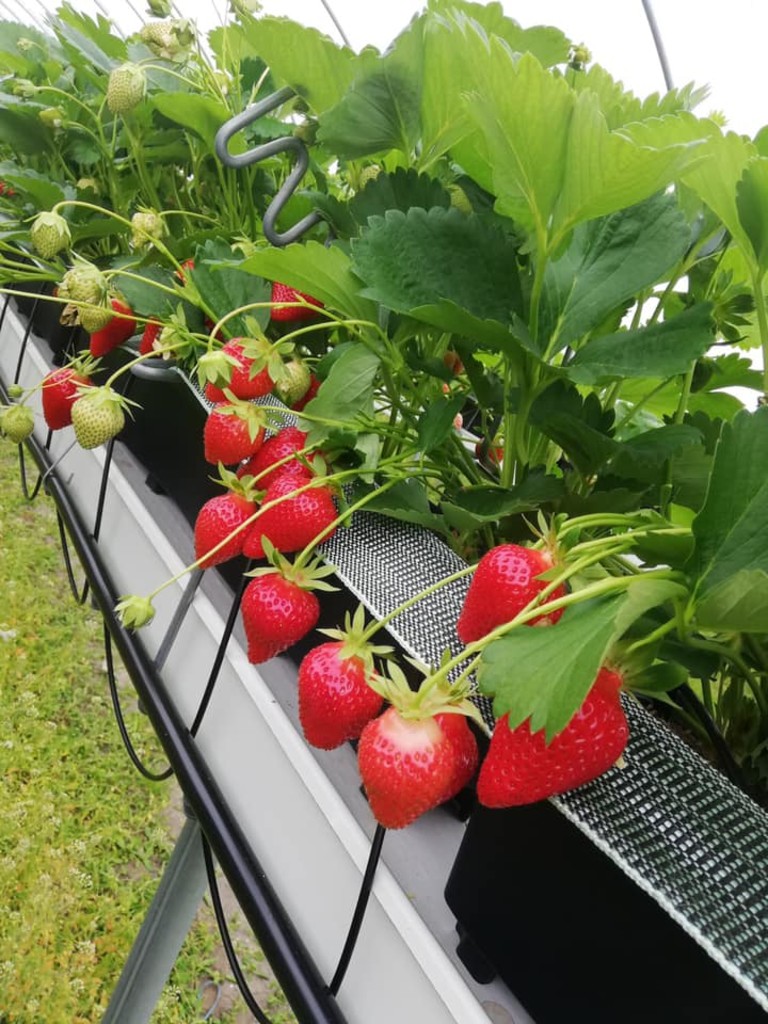 Bærproduksjonen på Vangstun Gard foregår i tunnel, medan frukta framleis er på friland.
