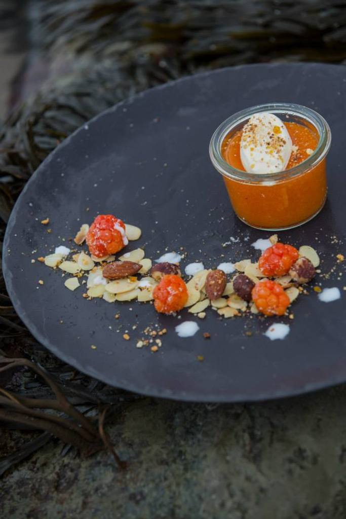 Lokaleråvarer er viktig for oss og vi bruker det vi kan få fra Varanger. Varanger har råvarer i verdensklasse, fra havet, fjellet, myra, fjæra og i fra hagen. Vi bruker mye bær, ville vekster i sesong og selvsagt fersk fesk rett fra Østhavet og rein fra Varanger.