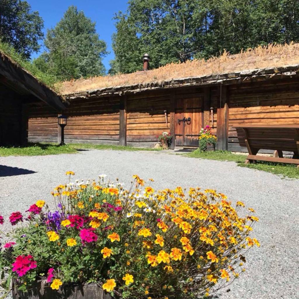 bruker du ca. 5 min. med bil. Det er bygget en romslig parkeringsplass ved garden.Godt skjermet i det kuperte landskapet ligger tunet som en