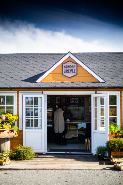 Søndre Grevle drives av Marthe, og den lille gule gårdsbutikken er gårdens hjerte. Her selges alt som produseres på gården, i tillegg til lokale gr…