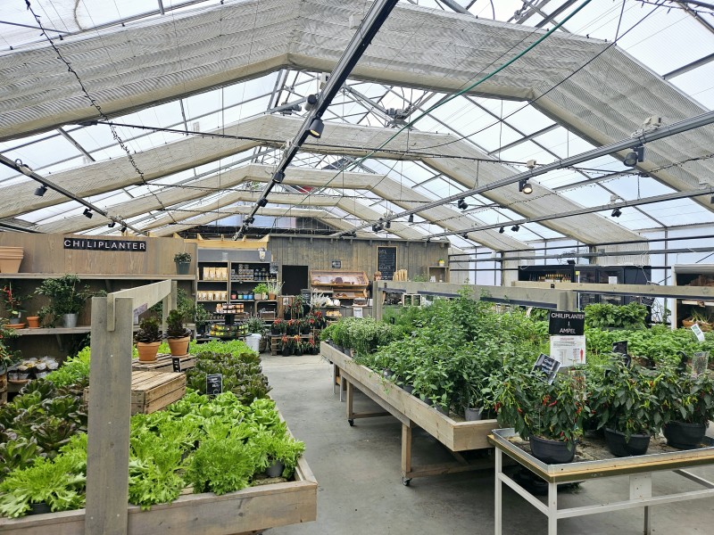 Vi produserer salater, urter, tomater, agurk, chili og blomster i de gamle veksthusene her på gården. I sesong har vi også grønnsaker alt i fra pot…