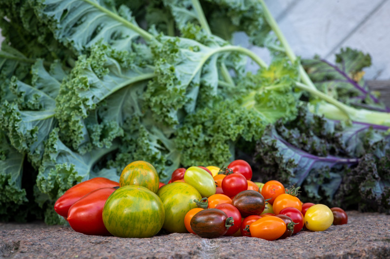 Vi produserer salater, urter, tomater, agurk, chili og blomster i de gamle veksthusene her på gården. I sesong har vi også grønnsaker alt i fra pot…