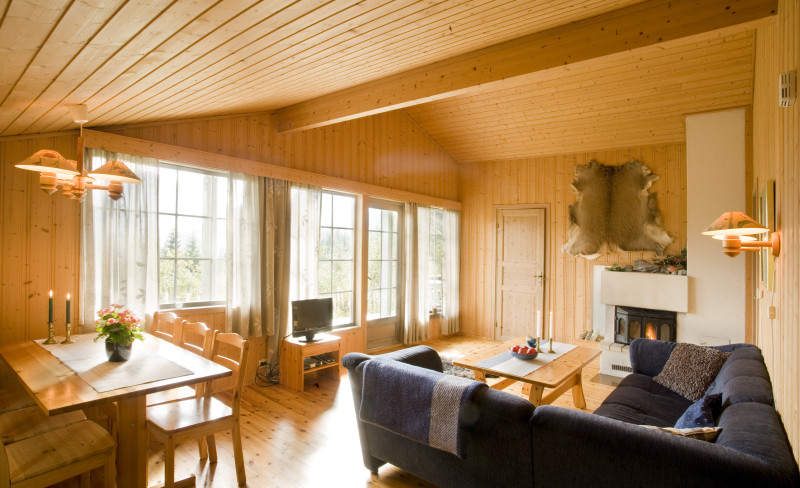 Hytter med peis og stor terasse. Flott utsikt og fint turterreng både til fots og på ski. Gratis båt for aurefiske. Salg av villfanga fjellaure fr…